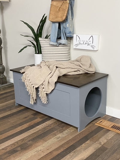 A beautiful way to hide the ugly kitty litter box is here! Our kitty litter box covers pair perfectly with our other items for a clean, cohesive home!