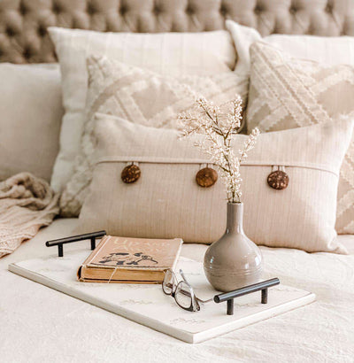 Our handmade Cottage tray is an ideal way to add a hint of cottage charm to your home. Its white distressed finish, decorated with a delicate floral motif, will embellish any room in the house and its versatile design allows for a variety of easy uses. Just choose the handle that best works for you and make your home uniquely yours.