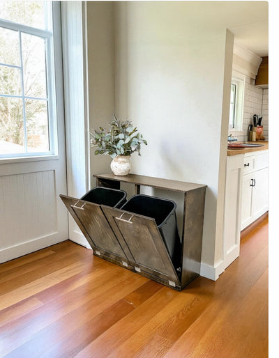 Perfect for your kitchen by concealing your trash, elevating your space while keeping curious pets at bay. Embrace elegance and functionality with this beautiful tilt-out cabinet!