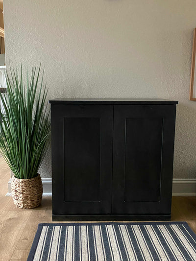 Double style pet food storage in black stain (Blk-fl | double food storage)