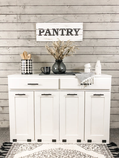 Keep your trash bins easily accessible but out of sight in your narrow space while adding luxury, style, elegance, and counter space!