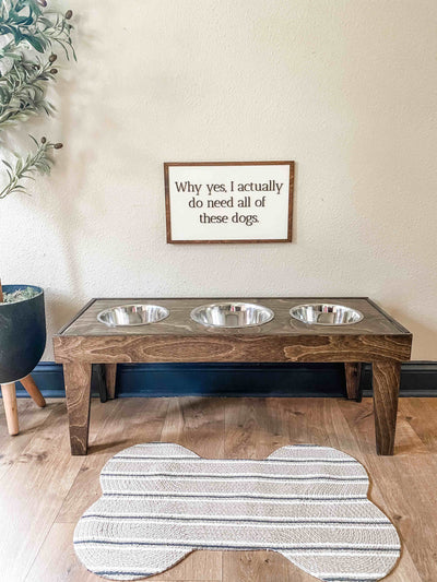 simple elevated pet feeder *warm brown / 14in / 3 bowl*