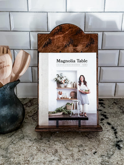 Our handmade cookbook holder is the perfect addition to your kitchen. The leaf design gives this cookbook holder an old-world feel while you create your culinary masterpiece! Displaying your cookbook is a fun way to add personality and charm to your home.