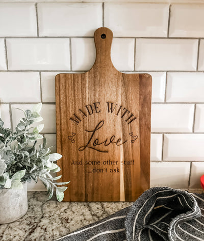 Show you care with an unforgettable gift: a personalized Acacia wood cutting board. Perfect for special occasions, it's sure to be treasured and remind them of your thoughtfulness each time they use it.