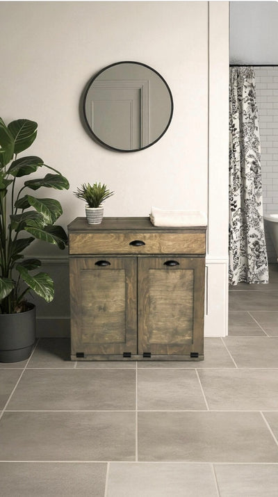 - Materials and colors for cabinets and hampers