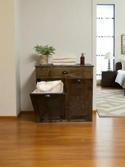 The Dashwood Laundry with a Storage Drawer offers the ideal combination of functionality and sophistication. With its luxurious dark brown finish, distinct tilt-out design, and spacious storage drawer, this cabinet provides a perfect blend of style and convenience for any laundry room. Impress your guests with this sophisticated and stylish addition to your home.