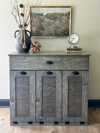 Enjoy the luxury of owning a premium piece of furniture that goes beyond enhancing your décor. This tilt-out trash cabinet not only elevates your home's style but also boosts its functionality, making organization effortless and your space more efficient.