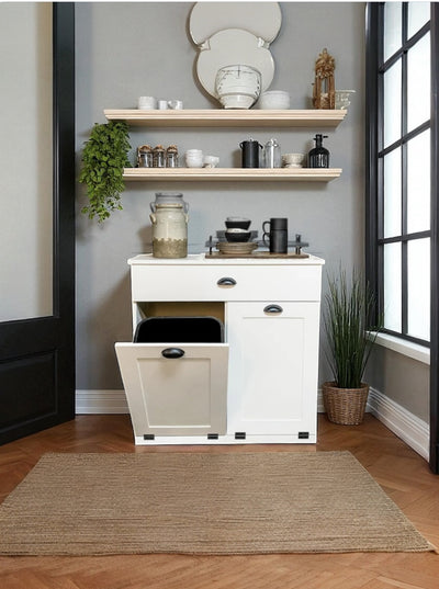 Keep that unsightly trash can out of view, add some extra counter space, and boost your organization with a storage drawer, all while heightening the elegance of your space with this contemporary yet classic tilt-out cabinet.