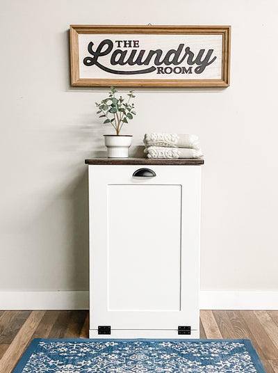 Conceal your dirty laundry, add some tabletop space to your bed, bath, or laundry room, and do it all in style with an elegant tilt-out laundry hamper.