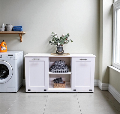 The luxury of having a high-quality piece of furniture in your home, and the comfort of knowing it is doing so much more than just adding to your decor. Amplify your home's functionality and style with this tilt-out laundry cabinet.