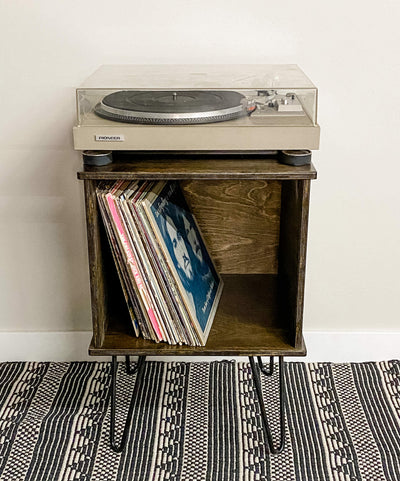 This gorgeous open vinyl record storage is a must for avid LP collectors! Let us help you organize those albums in a beautiful, handmade Baltic Birch cabinet. Each cubby is perfectly arched to make retrieval of your coolest jams a breeze. These end tables will match our vinyl record cabinets perfectly!