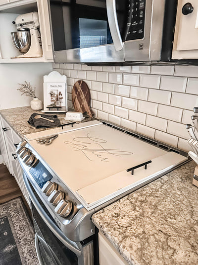 Life is good when friends and family gather! Keep your friends near and your kitchen tidy with our beautiful, farmhouse gather stove cover. We offer several choices to choose from making this the perfect gift, personalized gift. Adding 30 extra inches of counter space is easy with our handmade noodle boards.