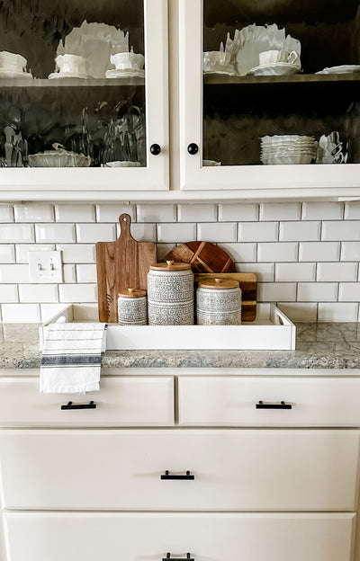 The perfect way to organize your counter while keeping your things close at hand. This tray is also a perfect solution for holiday decor. Add in a few candles and some greenery for a stunning tabletop display.